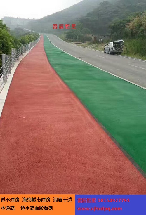 5、養護:透水地坪由于存在大量的孔洞,易失水,干燥很快,所以養護非常重要.尤其是早期養護,要注意避免地坪中水分大量蒸發。通常透水混凝土拆模時間比普通混凝土短,如此其側面和邊緣就會暴露于空氣中,應用塑料薄膜或彩條布及時覆蓋路面和側面,以保證濕度和水泥充分水化。透水地坪應在澆注后1天開始灑水養護,淋水時不宜用壓力水柱直沖混凝土表面,這樣會帶走一些水泥漿,造成一些較薄弱的部位,但可在常態的情況下直接從上往下澆水。透水地坪的澆水養護時間應不少于7天。